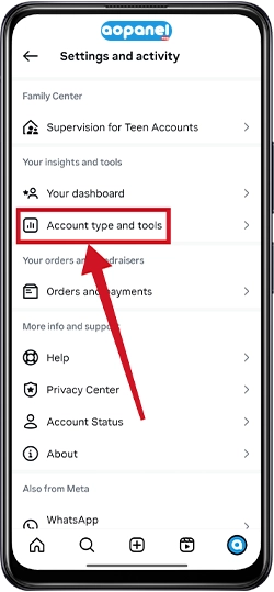 - ابتدا وارد بخش Account type and tools می شویم.