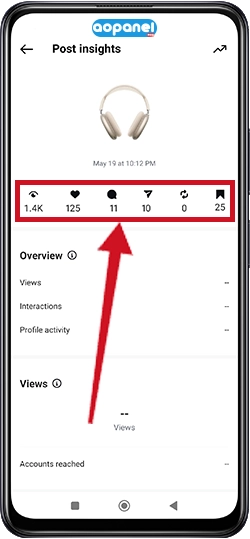 وقتی وارد View Insights شوید، اطلاعات کلی پست در بخش Performance نمایش داده میشود. در این قسمت میتوانید موارد زیر را مشاهده کنید: