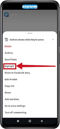- استوریت بهعنوان اولین آیتم در اون هایلایت ذخیره میشه.