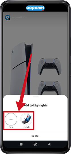 - اگه هایلایت جدید میخوای بسازی، روی New بزن و اسم دلخواه انتخاب کن. اگه هم بخوای میتونی از هایلایت های قدیمی انتخاب کنی.