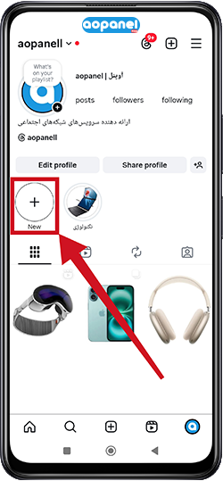 - روی علامت + در بخش هایلایتها (زیر بیو) بزن.