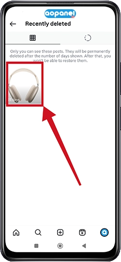 - پس از تایید، پست دوباره در گالری پروفایل شما قرار می گیرد. اگر پستی را نمی خواهید، می توانید به جای Restore گزینه Delete را بزنید تا برای همیشه حذف شود.