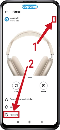 - گزینه Restore را انتخاب کنید تا پست به وضعیت قبلی برگردد. در صورت نیاز، هویت شما با ارسال کد به ایمیل یا شماره موبایل تایید می شود.