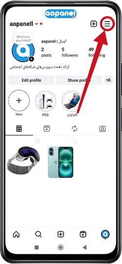 - ابتدا برنامه اینستاگرام را باز کنید و به صفحه پروفایل خود بروید.