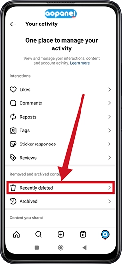 اگر استوری را به تازگی پاک کرده اید، کافی است وارد تنظیمات (Settings) شوید، بخش Account را باز کنید و گزینه Recently Deleted را انتخاب کنید.